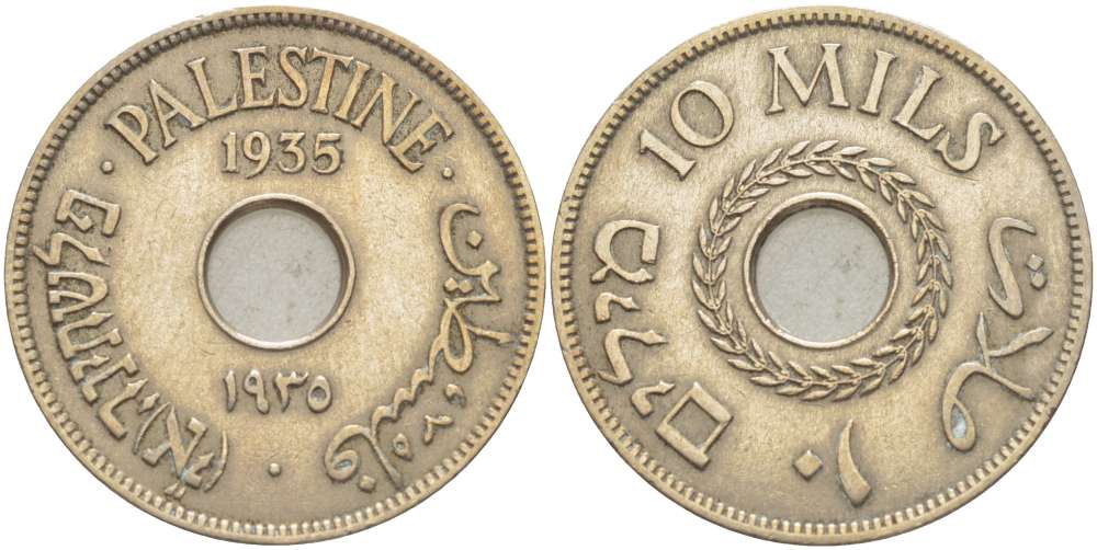 Израиль, Палестина 10 милсов 1935 Британская администрация, редкий год KM 4 медно-никель 4185-1216