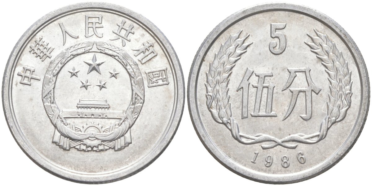Китай 5 фыней 1986 народная республика KM 3 алюминий 216-811