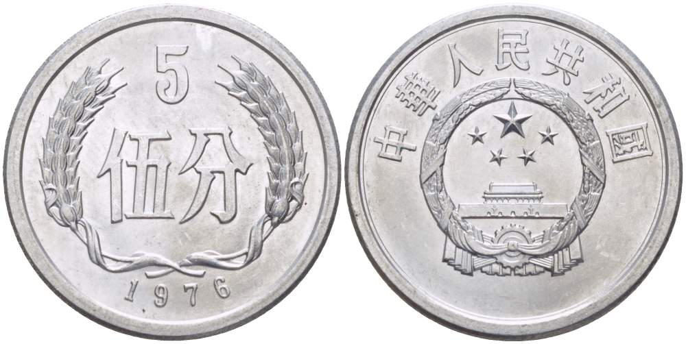 КИТАЙ 5 ФЕНОВ 1976 НАРОДНАЯ РЕСПУБЛИКА KM 3 алюминий aUNC 4511-727