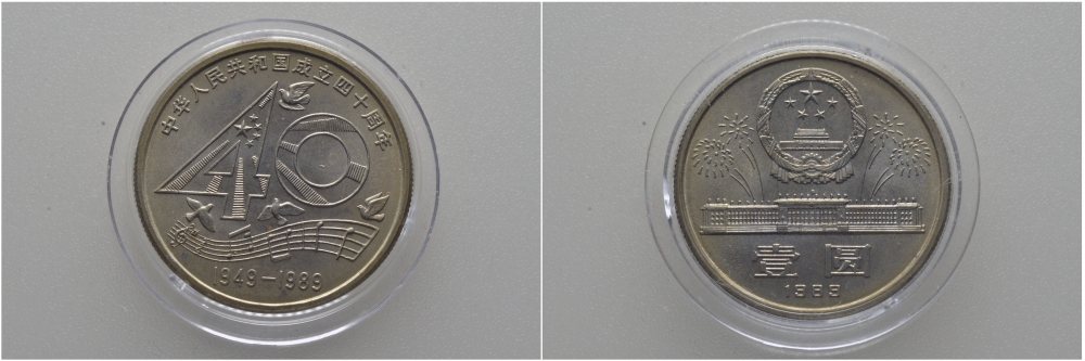 КИТАЙ 1 ЮАНЬ 1989 40 ЛЕТ НАРОДНОЙ РЕСПУБЛИКИ KM 220 медно-никель UNC 1076-4-61