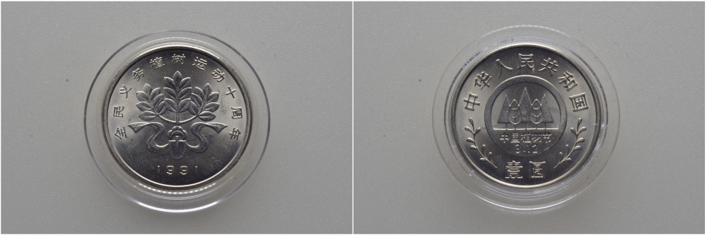 КИТАЙ 1 ЮАНЬ 1991 ФЕСТИВАЛЬ ДЕРЕВЬЕВ, ЦВЕТЫ KM 340 никель плакированный сталью UNC 1072-10-74