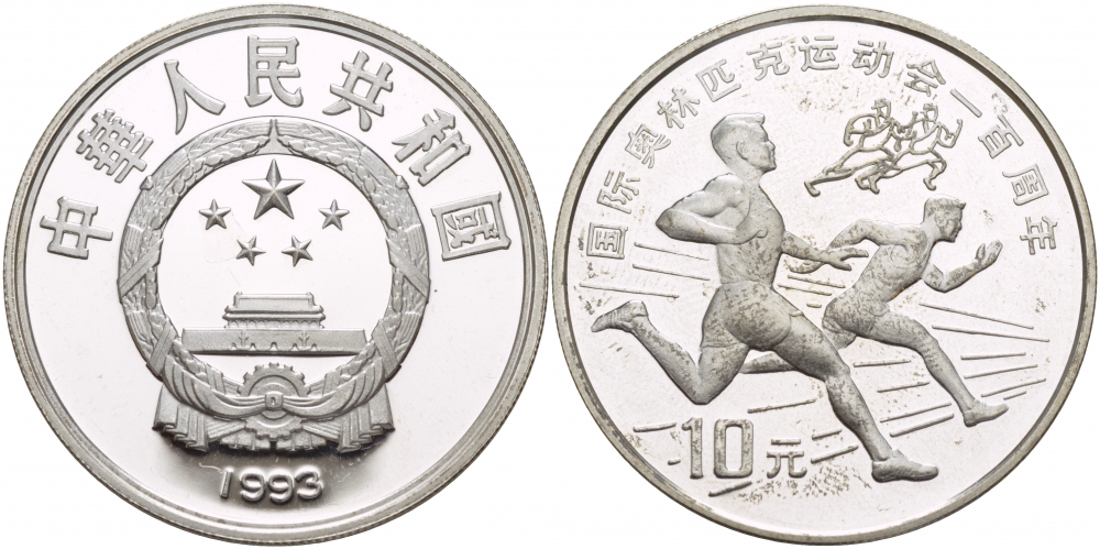 КИТАЙ 10 ЮАНЕЙ 1993 ОЛИМПИАДА, ЛЕГКАЯ АТЛЕТИКА, БЕГ, ТИРАЖ 30000 ЭКЗ. KM 525 серебро PROOF 1081-3-42
