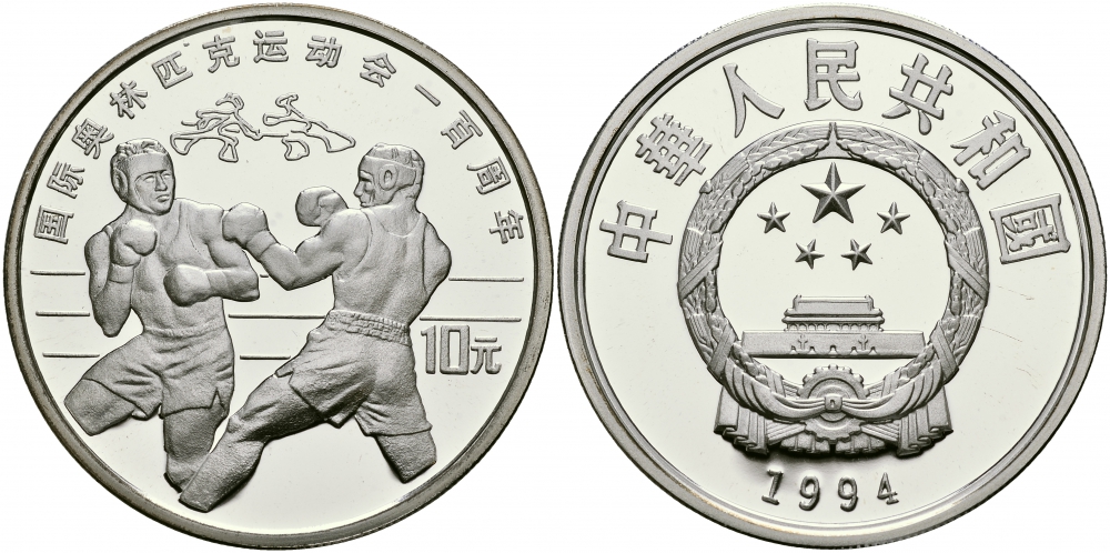 Китай 10 юаней 1994 олимпийские игры, бокс, тираж 30000 экземпляров KM 528 серебро PROOF 02-226-24