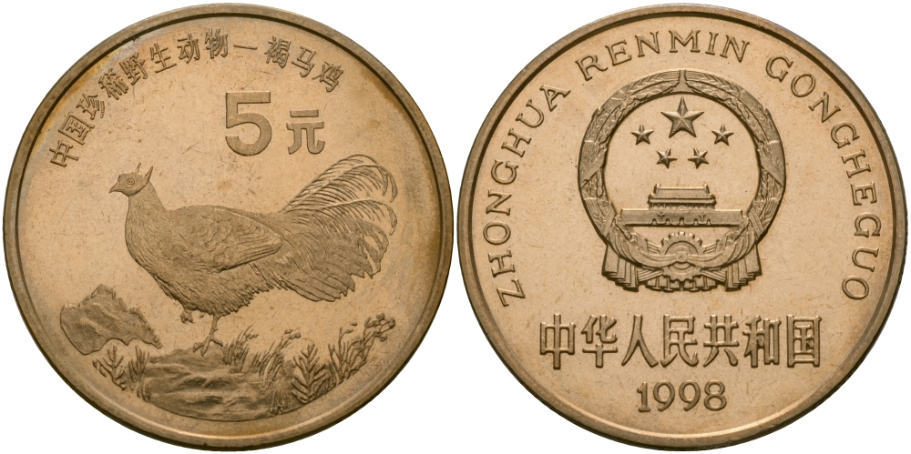 Китай 5 юаней 1998 Китайский аллигатор KM 1122 медь PROOF 1072-9-52