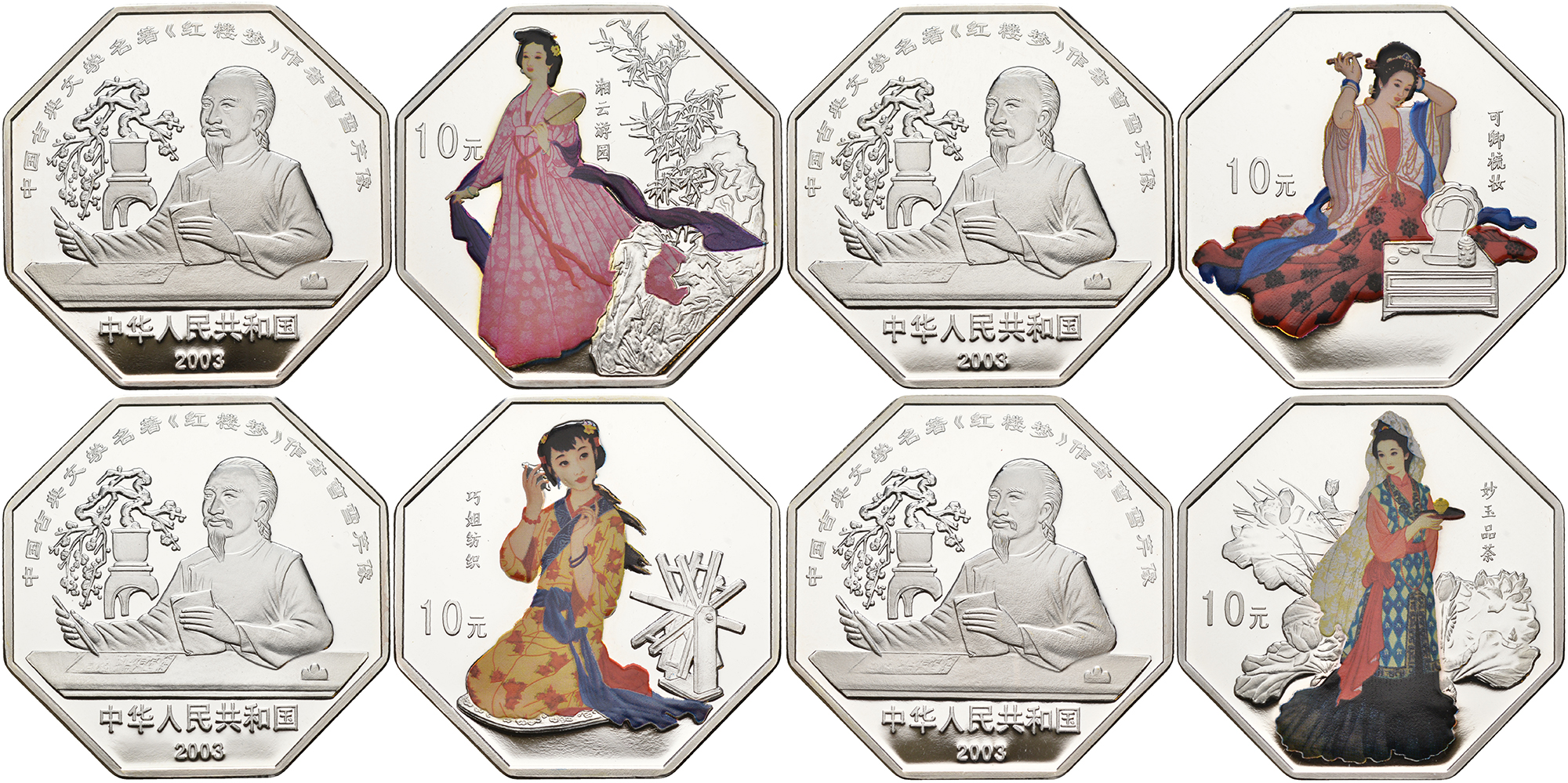 Китай набор из 4 монет по 10 юаней 2003 женщины Китая, сон в красном тереме, в оригинальной упаковке, с сертификатом серебро PROOF 14-01-04-06