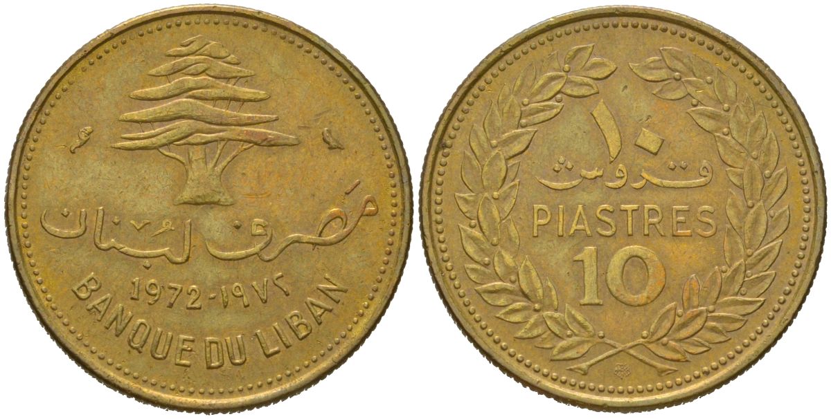 Ливан 10 пиастров 1972 KM 26 никель латунь 4164-222