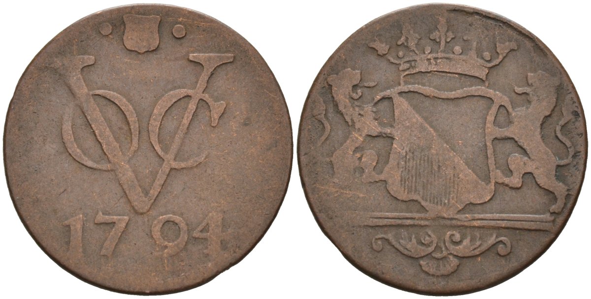 Нидерландская Восточная Индия, Утрехт (Утрехт) 1 дуит 1794 KM 111.1 медь 4577-334