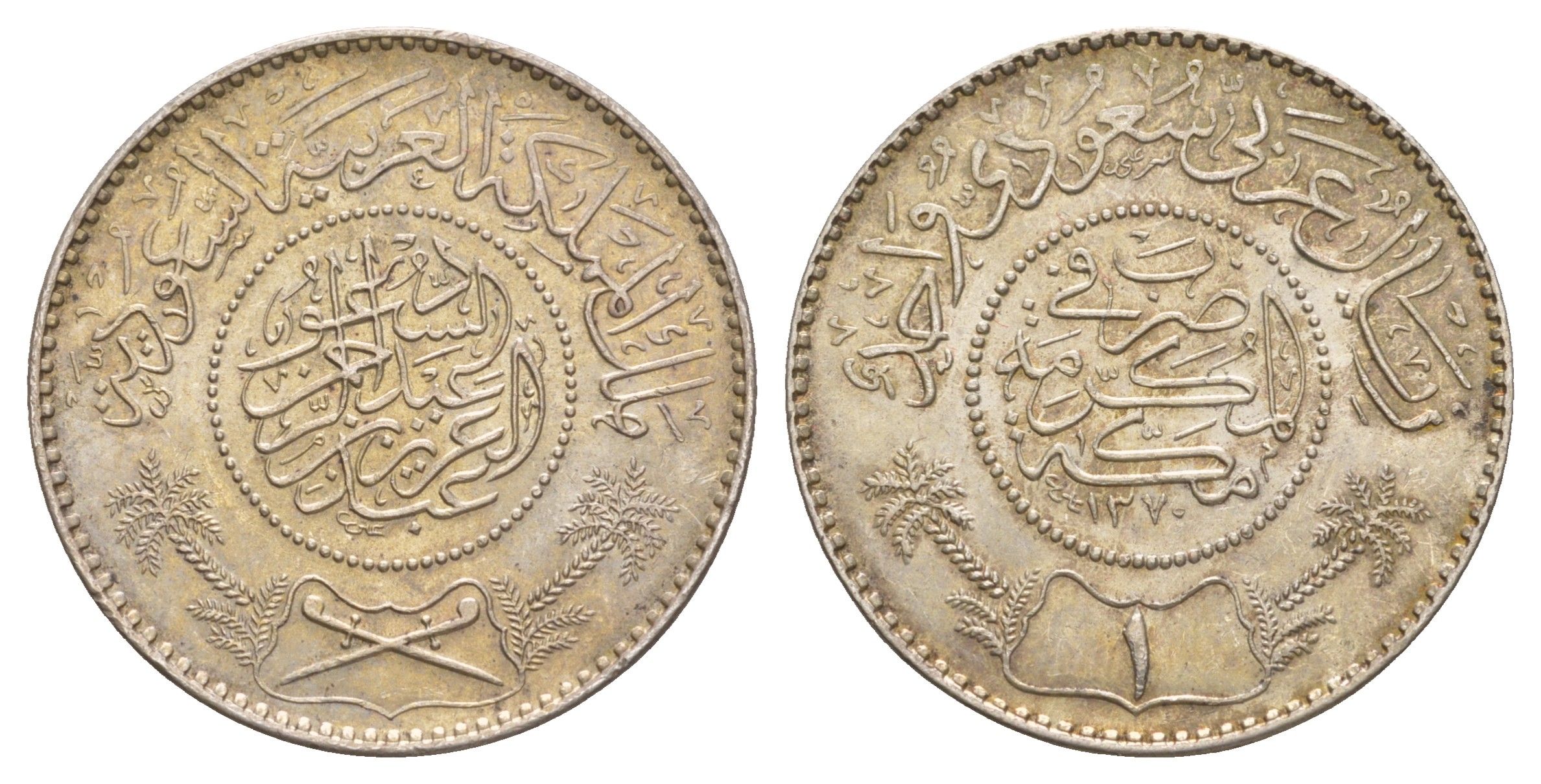 Саудовская Аравия 1 риял (риал) 1951 AH 1370 KM 18 серебро UNC 1515-1125