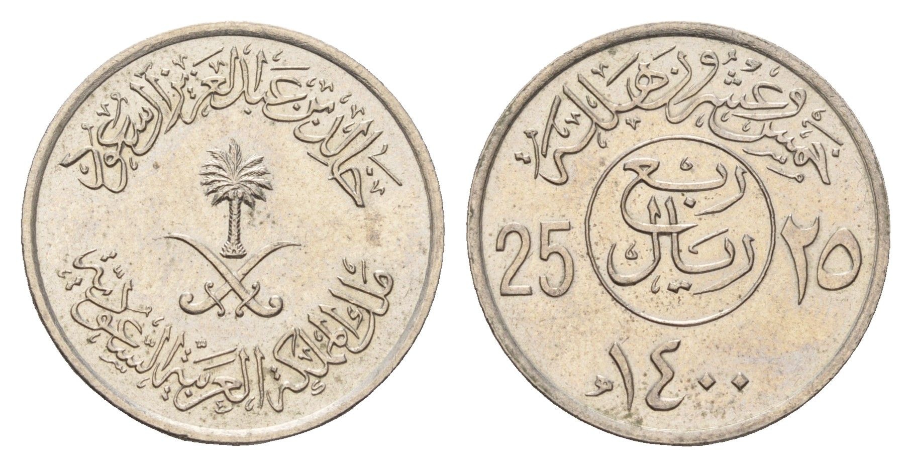 Саудовская Аравия 25 халалов 1980 AH 1400 KM 55 медно-никель UNC 08-1152