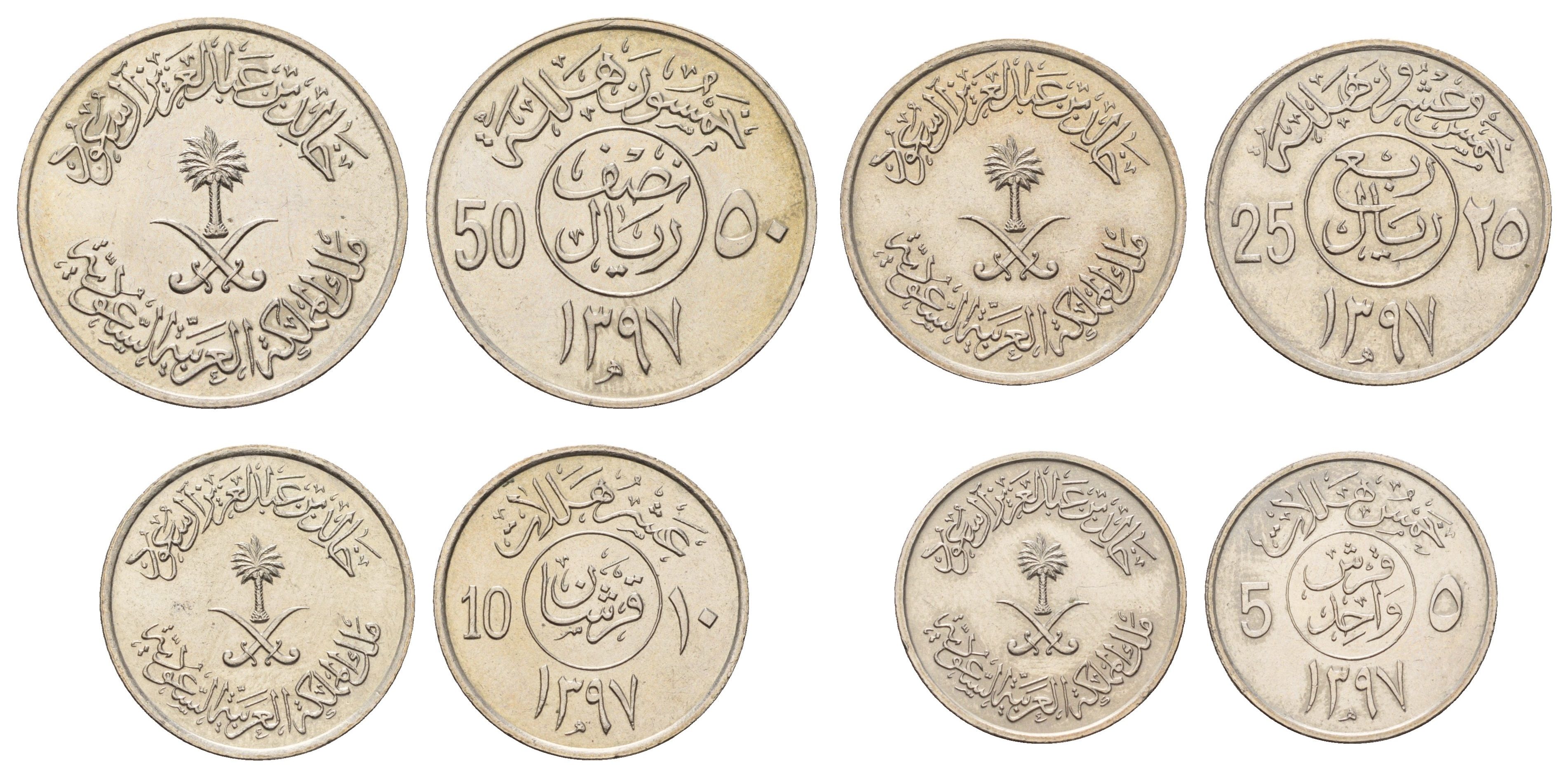 Саудовская Аравия набор из 4 монет (5, 10, 25 и 50 халалов) 1977 AH 1397 KM 53, 54, 55 и 56 медно-никель UNC 4675-534-537