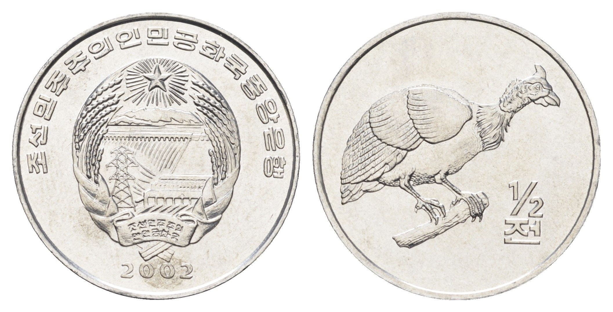 КНДР (Северная Корея) 1/2 чона 2002 Мир животных - Цесарка KM 187 алюминий UNC 4662-342