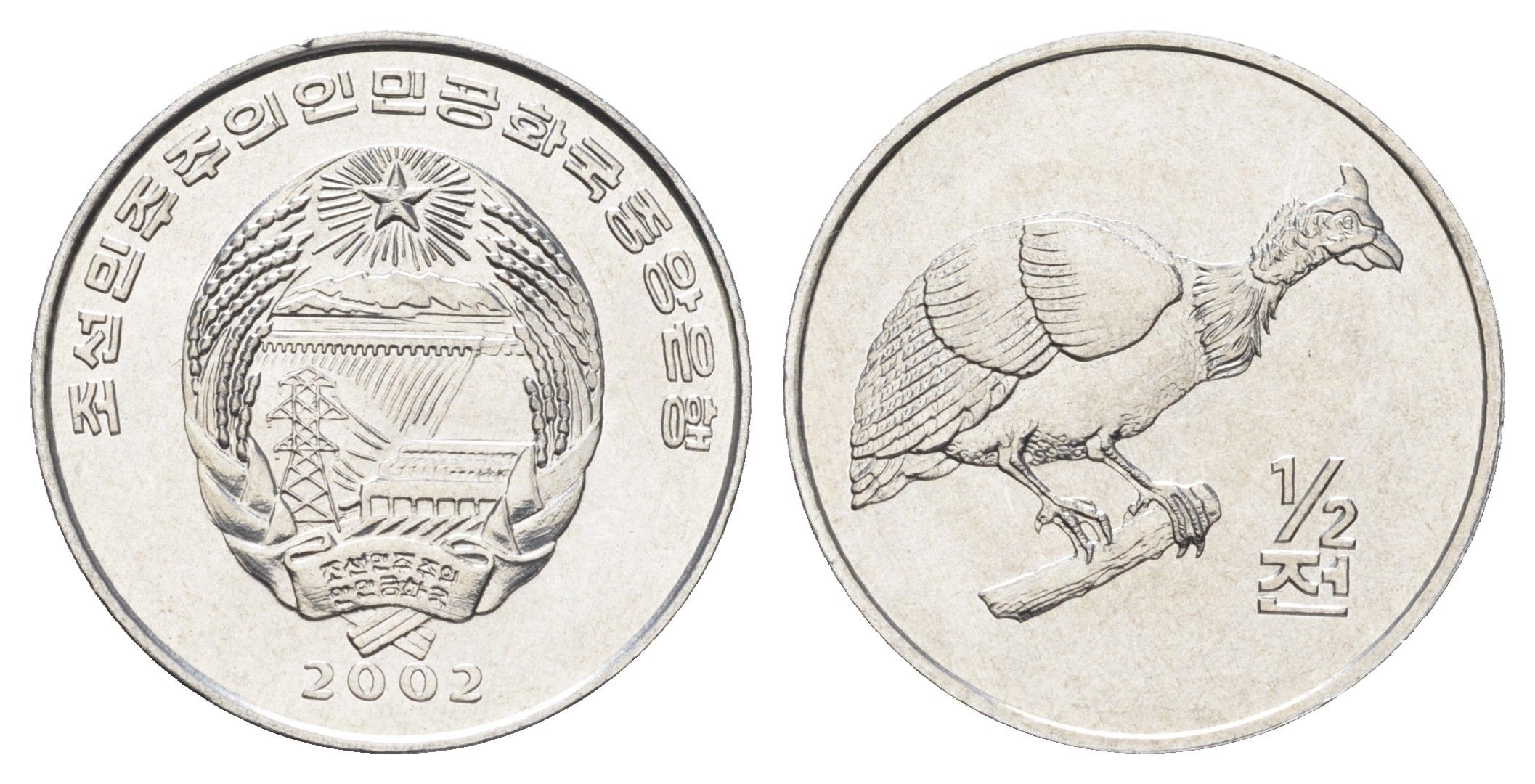 КНДР (Северная Корея) 1/2 чона 2002 Мир животных - Цесарка KM 187 алюминий UNC 4662-344