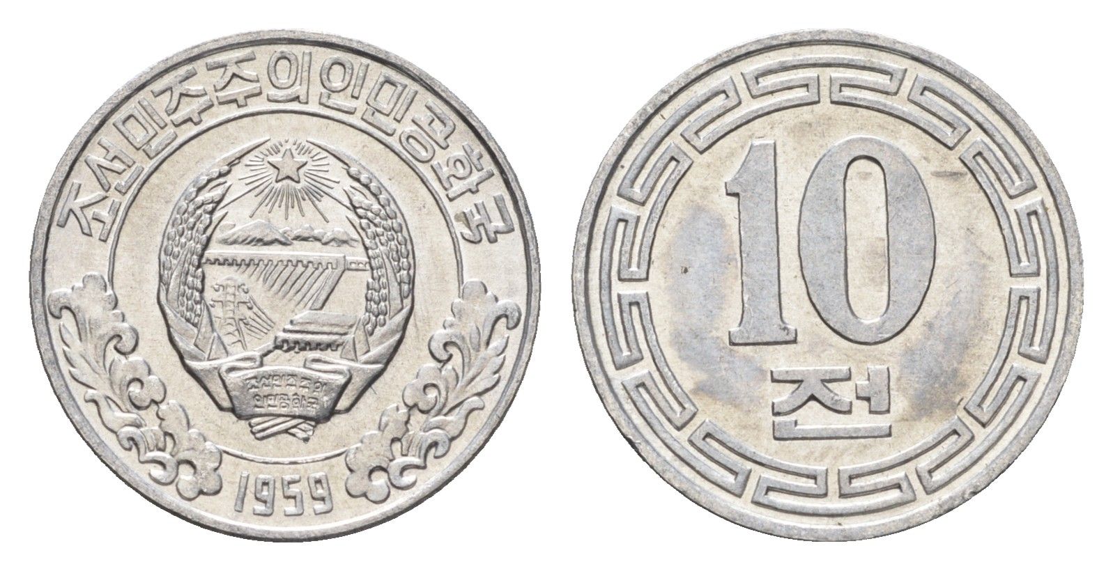 КНДР (Северная Корея) 10 чон 1959 без звезд на реверсе KM 3 алюминий UNC 4659-1123
