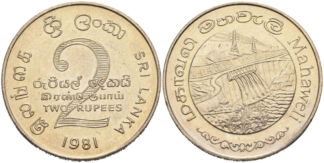 Шри-Ланка 2 рупии 1995 ПЛОТИНА МАХАВЕЛИ, ГИДРОЭНЕРГЕТИКА KM 145 медно-никель aUNC 4565-1016