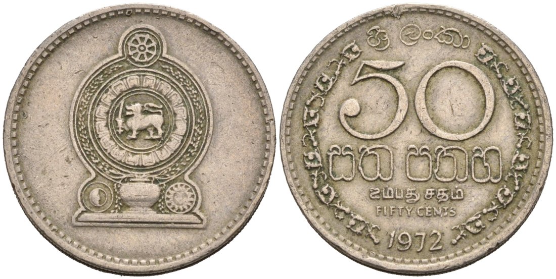 Шри-Ланка 50 центов 1972 KM 135.1 медно-никель 4566-826