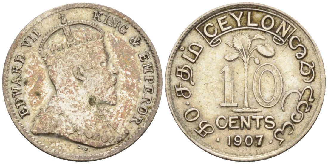 ЦЕЙЛОН 10 ЦЕНТОВ 1907 ЭДУАРД VII (1902-1910) KM 97 серебро 54-1068