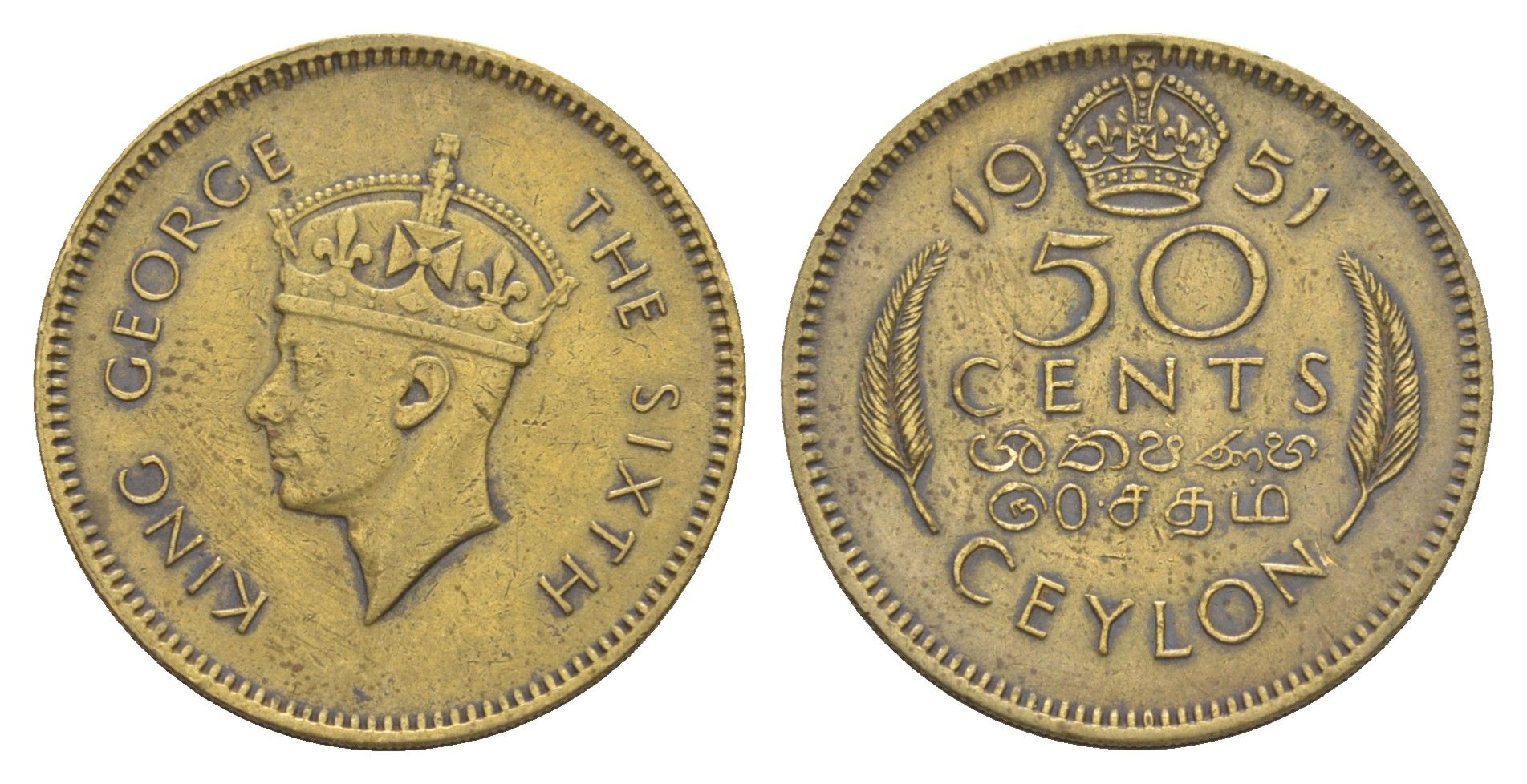 Цейлон 50 центов 1951 KM 123 никель латунь 4650-853