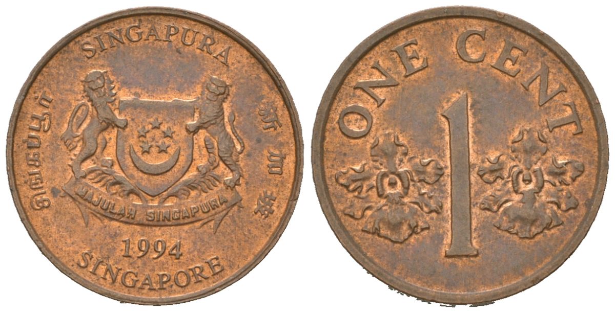 Сингапур 1 цент 1994 sm KM 98 цинк плакированная медью 4618-455