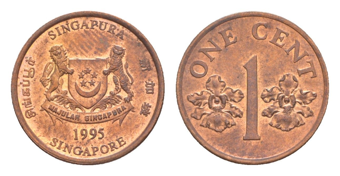 Сингапур 1 цент 1995 KM 98 цинк с медным покрытием 4640-634