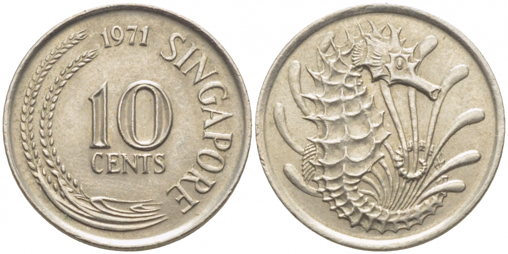СИНГАПУР 10 ЦЕНТОВ 1971 МОРСКОЙ КОНЕК KM 3 алюминиевая бронза 105-1242