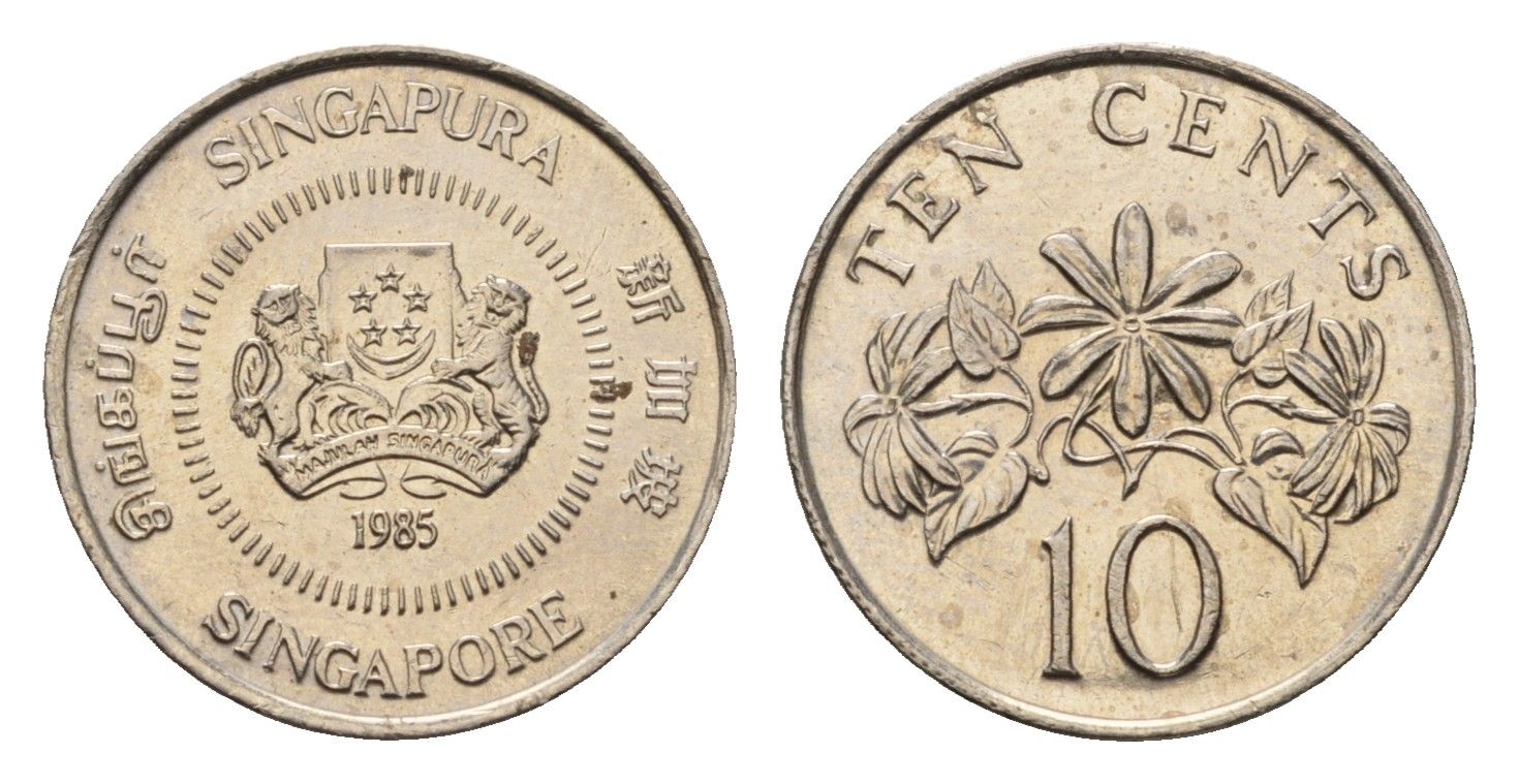Сингапур 10 центов 1985 морской конёк KM 51 медно-никель UNC 4609-1058