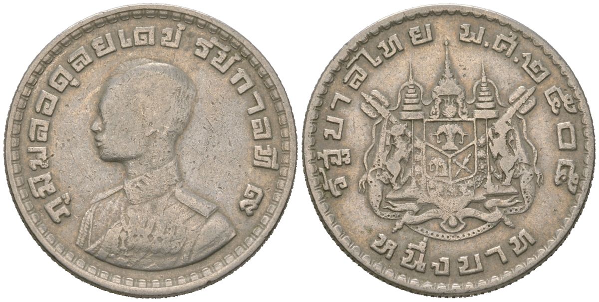 Таиланд 1 бат 1962 BE 2505, Рама IX (1946-2016) Y 84 медно-никель 4619-643