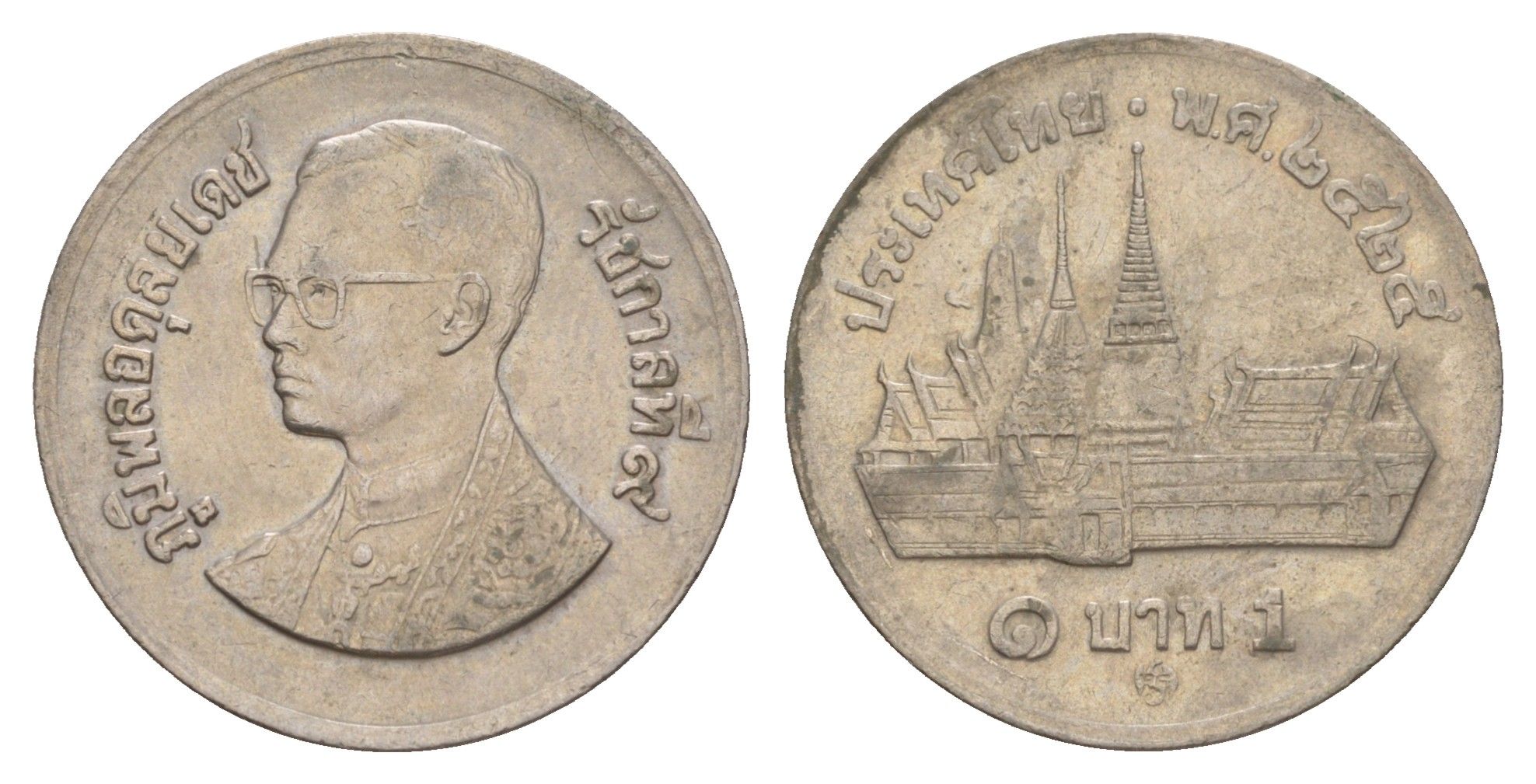 Таиланд 1 бат 1982 BE 2525, Рама IX (1946-2016), королевский дворец Y 159 медно-никель 4654-312