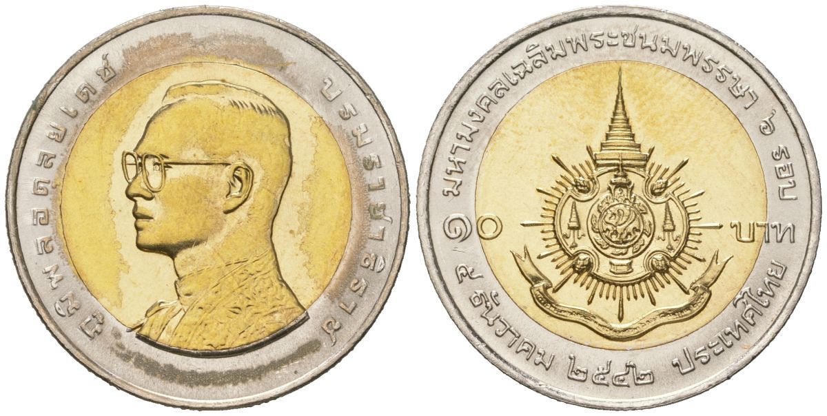 Таиланд 10 бат 1999 BE 2542, Рама IX (1946-2016), 72 года со дня рождения Короля Рамы IX KM 350 биметалл UNC 110-751