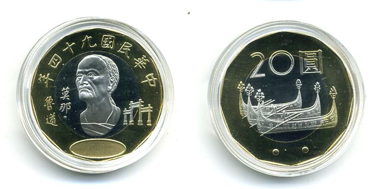 ТАЙВАНЬ 20 ЮАНЕЙ 2005 KM 565 биметалл PROOF 00-00