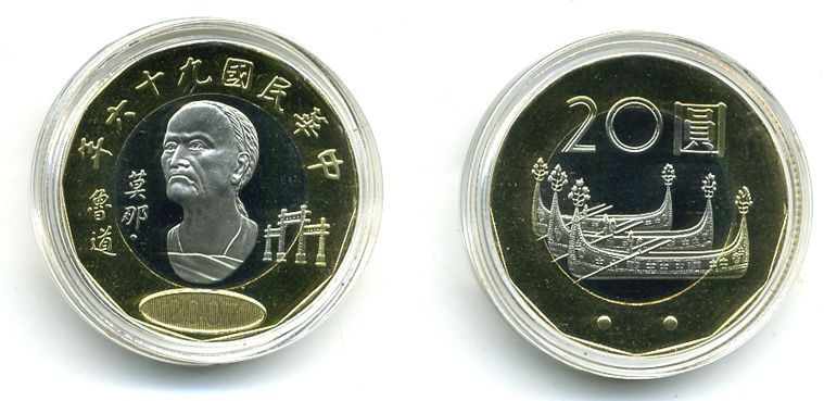 ТАЙВАНЬ 20 ЮАНЕЙ 2007 KM 565 биметалл PROOF 00-00