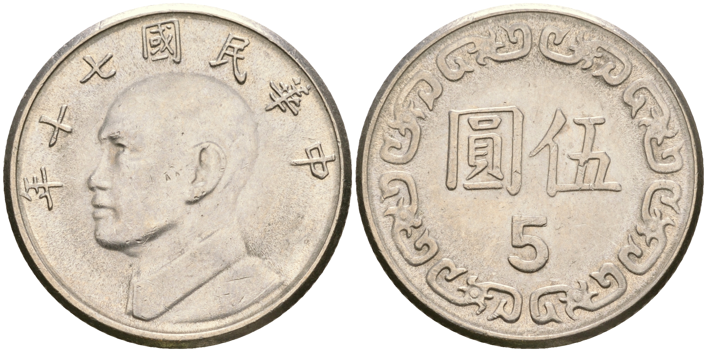 Тайвань 5 юаней 1981 год 70, Чан Кайши KM 552 медно-никель 4364-3243