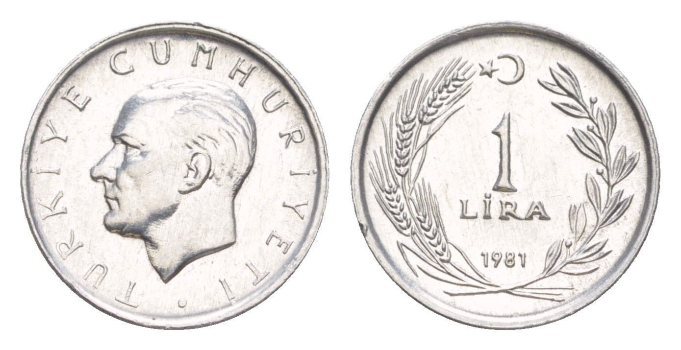 Турция 1 лира 1981 Мустафа Кемаль Ататюрк KM 943 алюминий UNC 4644-919