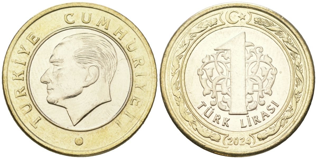 Турция 1 лира 2024 KM?1575 биметалл UNC 68-1156