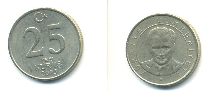 ТУРЦИЯ 25 КУРУШЕЙ 2005 KM 1167 медь никель цинк 3999-1236