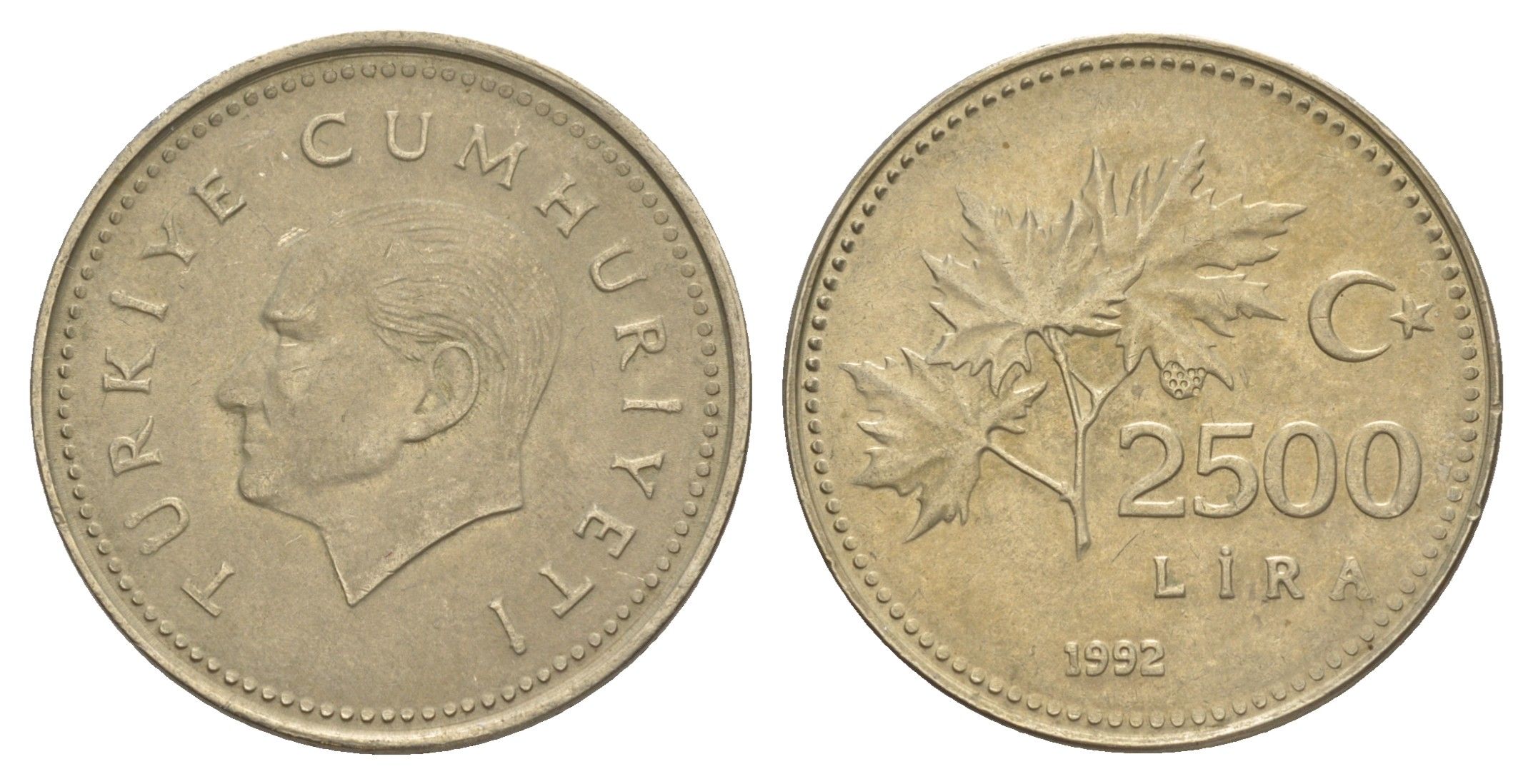 Турция 2500 лир 1992 Кемаль Ататюрк KM 1015 никель латунь 4648-852