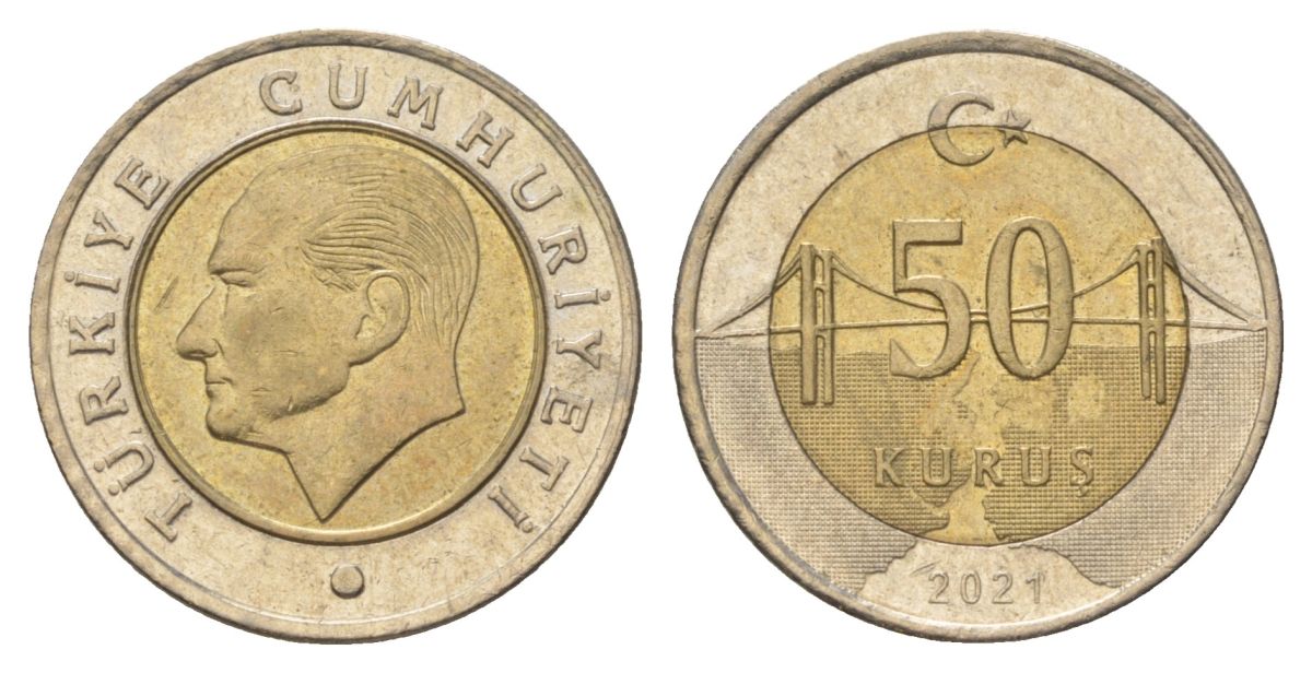 Турция 50 курушей 2021 Кемаль Ататюрк KM 1243 биметалл 4143-457