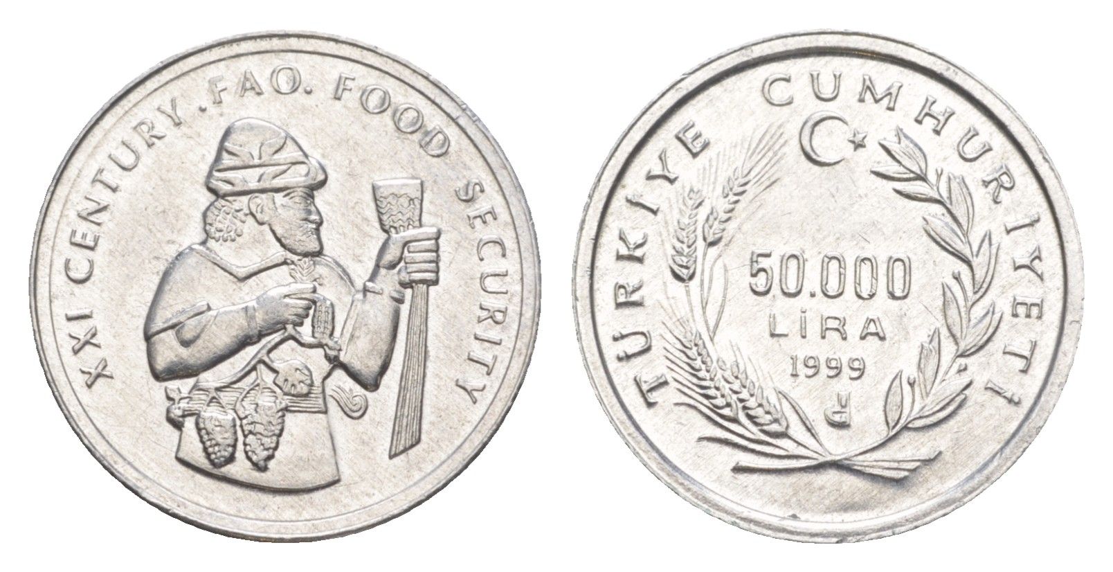 Турция 50000 лир 1999 ФАО - Продовольственная безопасность KM 1103 алюминий 39-718