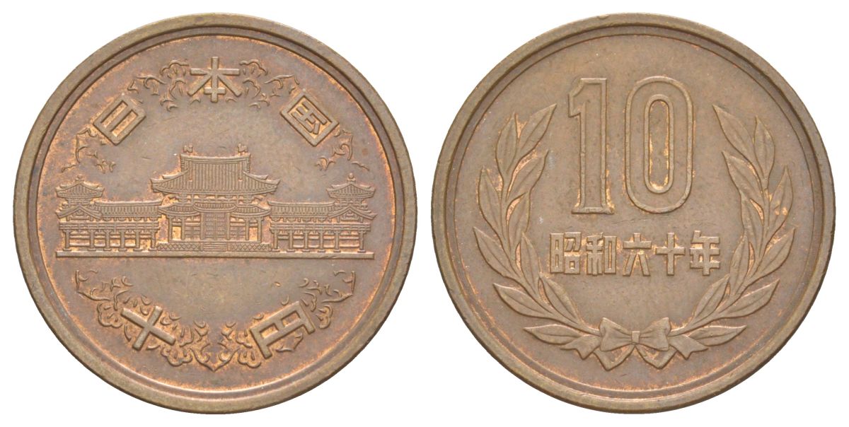 Япония 10 йен 1985 Yr. 60, Хирохито (1926-1989) Y 73a бронза 4629-746