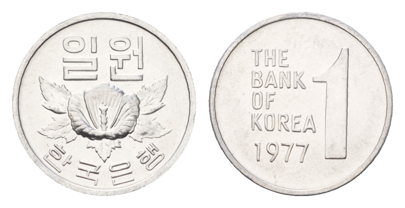 Южная Корея 1 вона 1977 KM 4a алюминий UNC M73-02