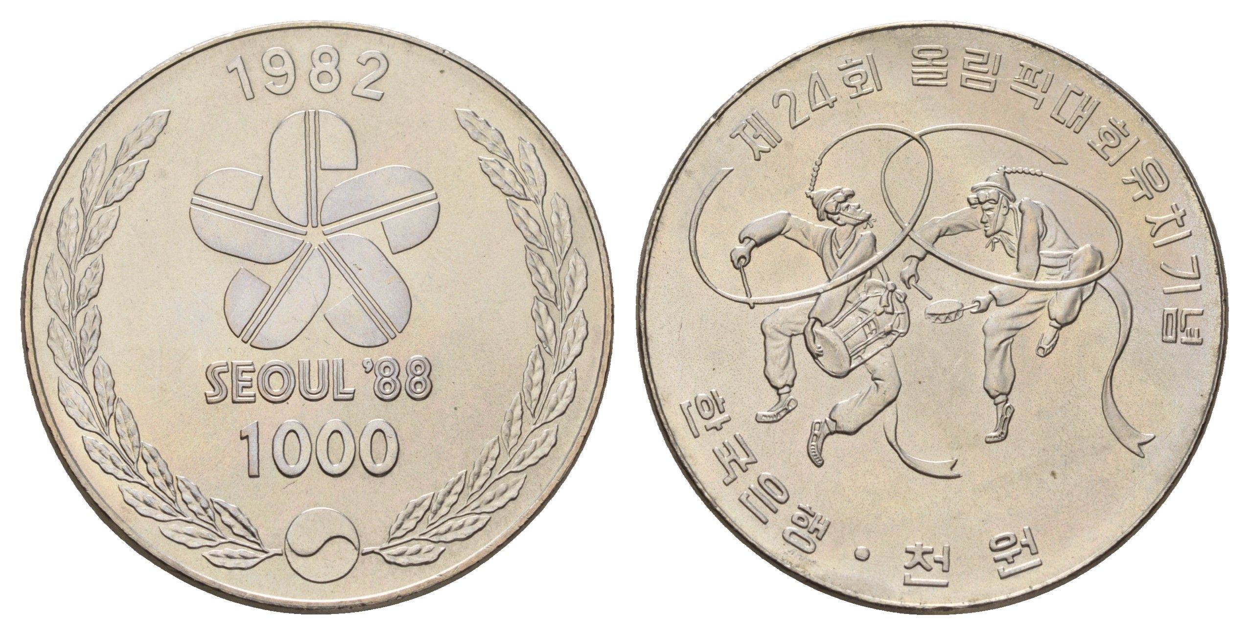 Южная Корея 1000 вон 1982 XXIV летние Олимпийские Игры, Сеул 1988 - Танцоры KM 28 медно никель UNC 11-137-35