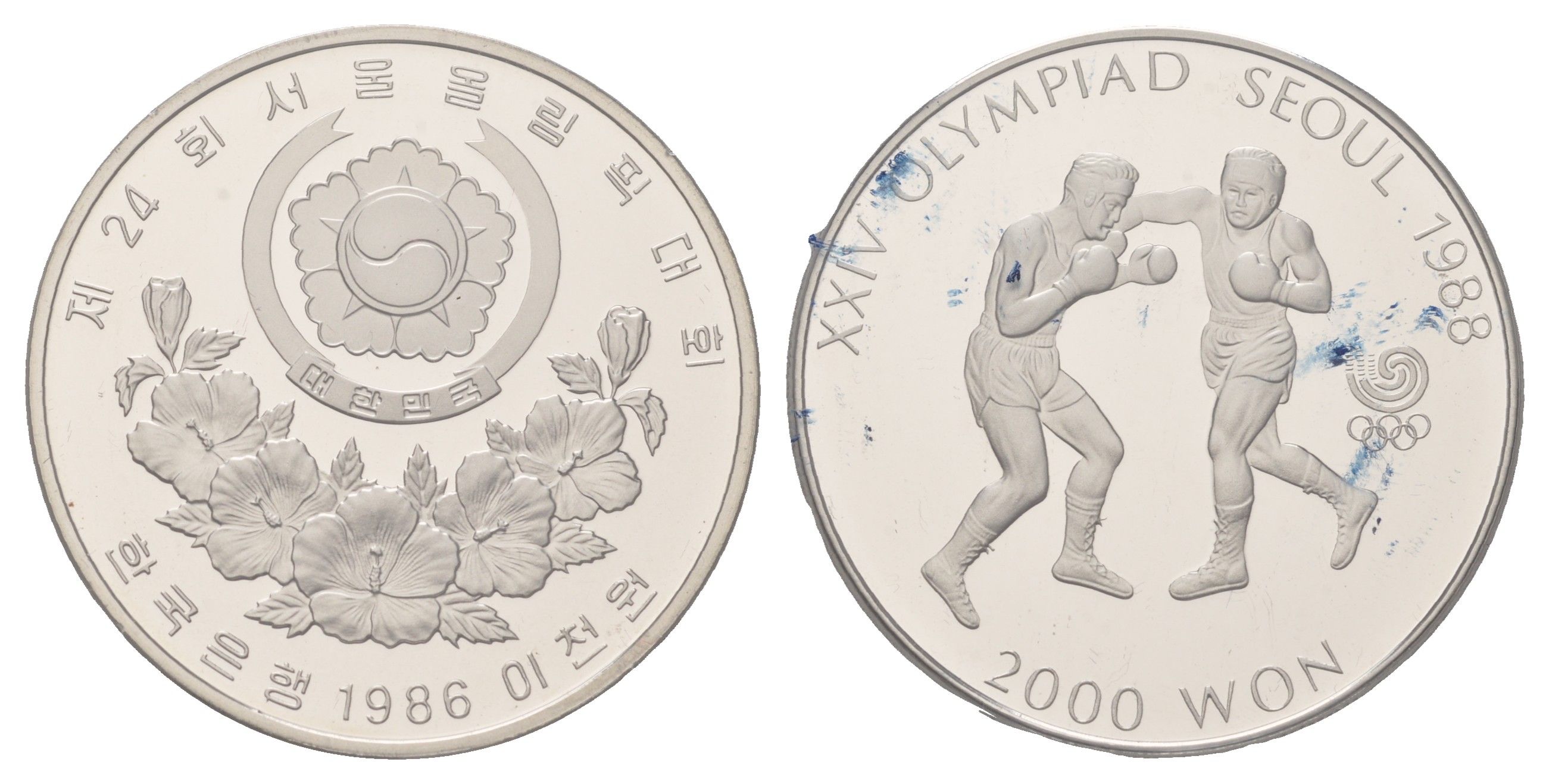 Южная Корея 2000 вон 1986 XXIV летние Олимпийские Игры, Сеул 1988 - Бокс KM 50 никель PROOF 11-138-12