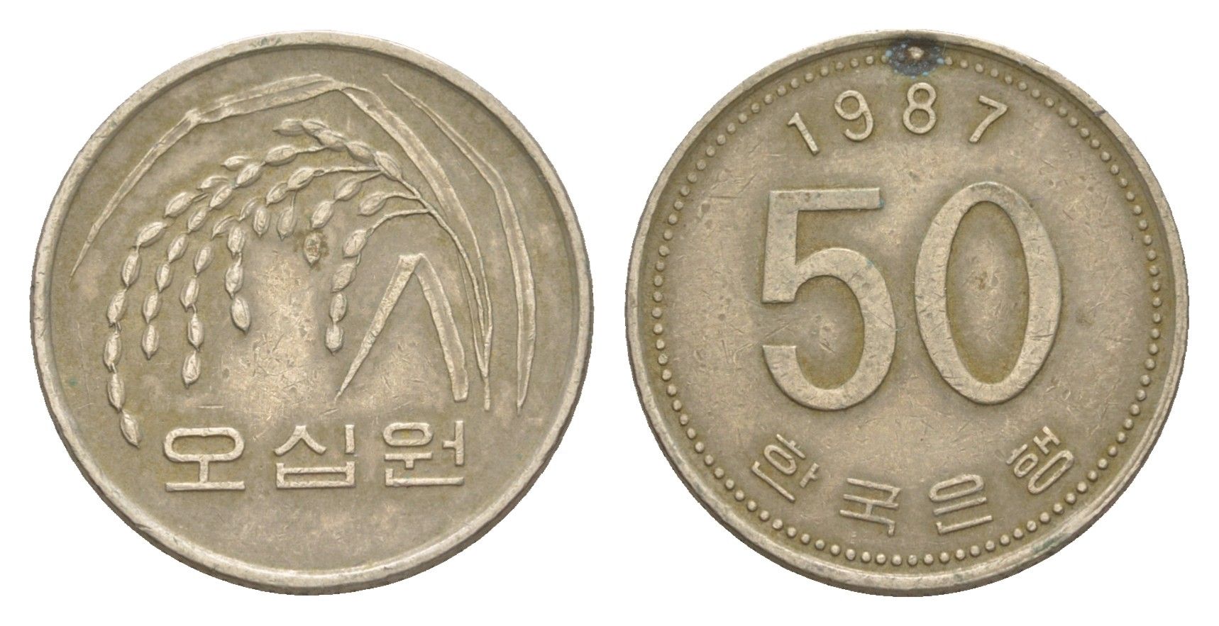 Южная Корея 50 вон 1987 KM 34 медь цинк никель 4654-324