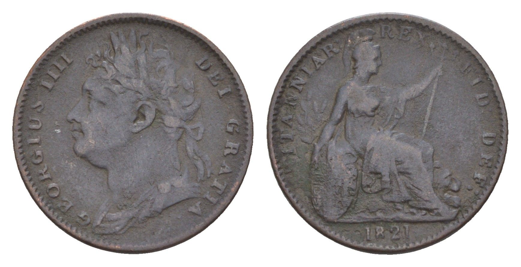 Великобритания 1 фартинг 1821 Георг IV (1820-1830) KM 677, Spink 3822 бронза 4658-865