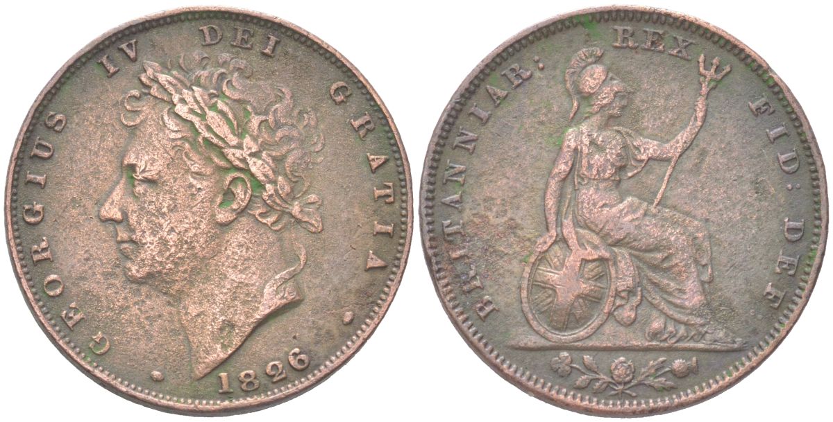 Великобритания 1 фартинг 1826 Георг IV (1820-1830) KM 697, Spink 3825 медь 4613-358