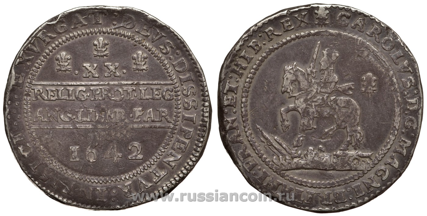 Англия 1 фунт = 20 шиллингов 1642 Карл I (1625-1649), монета гражданской войны, 119,74 гр Dav. 539 f; Seaby 2940 серебро 00-000-00
