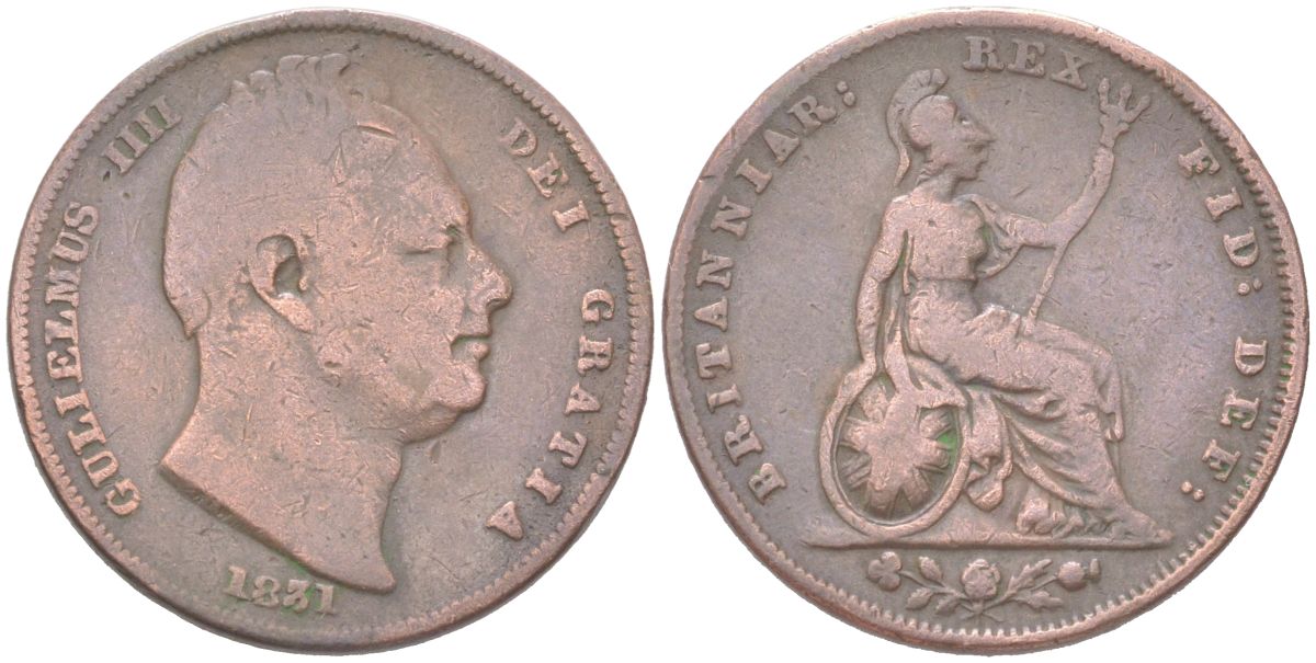 Великобритания 1 фартинг 1831 Вильгельм IV (1830-1837) KM 705, Spink?3848 медь 4613-362