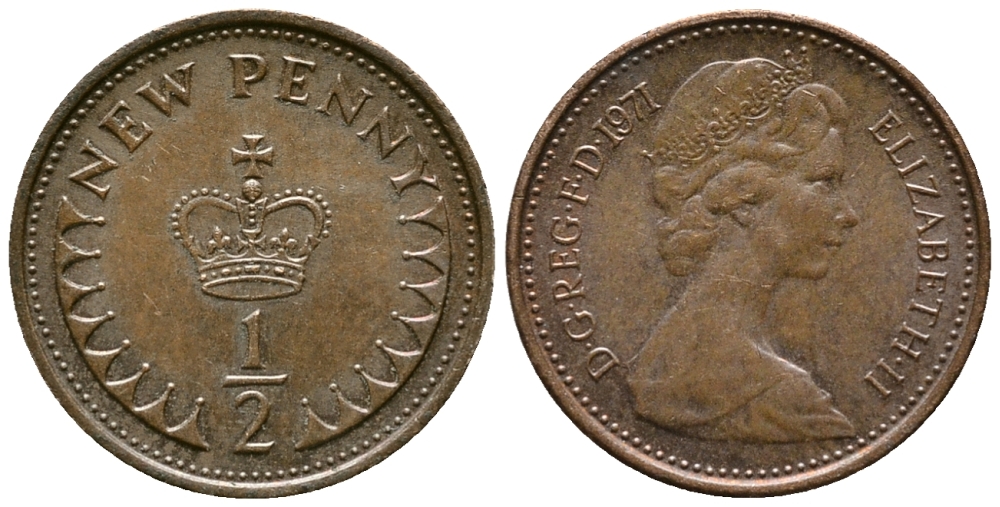 АНГЛИЯ 1/2 ПЕННИ 1971 ЕЛИЗАВЕТА II KM 914, Spink 4239 бронза 100-1262