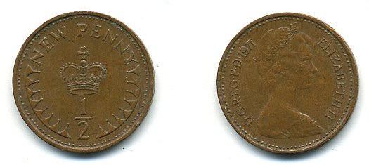 Великобритания 1/2 пенни 1971 Елизавета II (1952-2022) КМ 914, Spink 4239 бронза 4110-1632