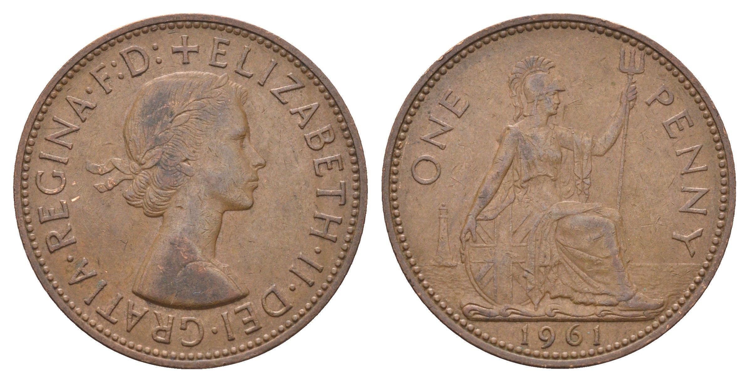 Великобритания 1 пенни 1961 Елизавета II (1952-2022) KM 897, Spink 4157 бронза 4661-835