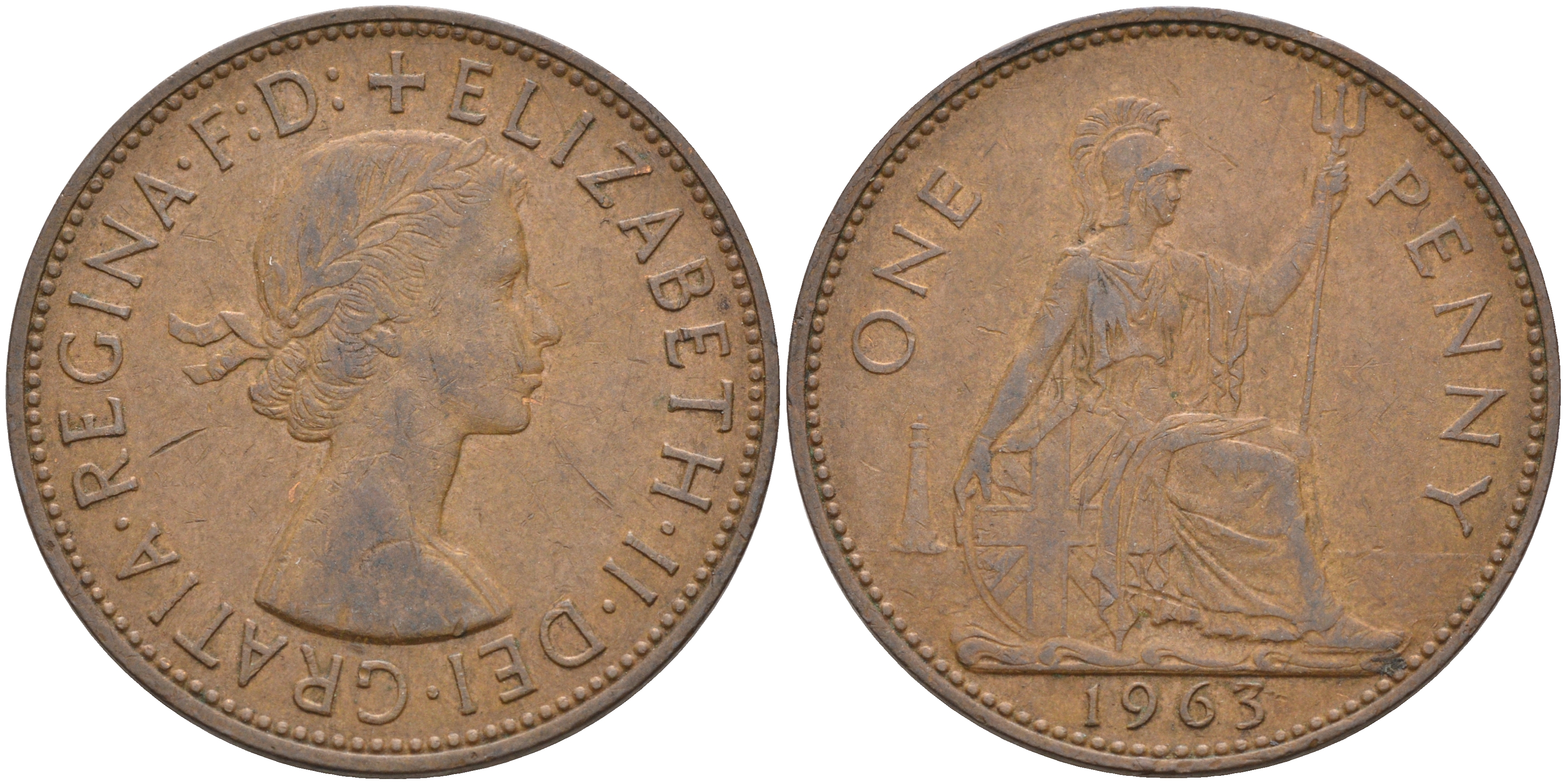 Великобритания 1 пенни 1963 Елизавета II (1952-2022) KM 897, Spink 4157 бронза 4367-116